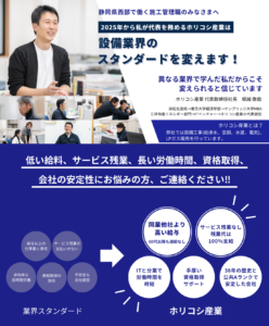 ホリコシ産業のキーワードは「24時間ライフサポートカンパニー」。ガス・水・空気・電力・不動産全てをサポートさせて頂くのが弊社のミッションです。